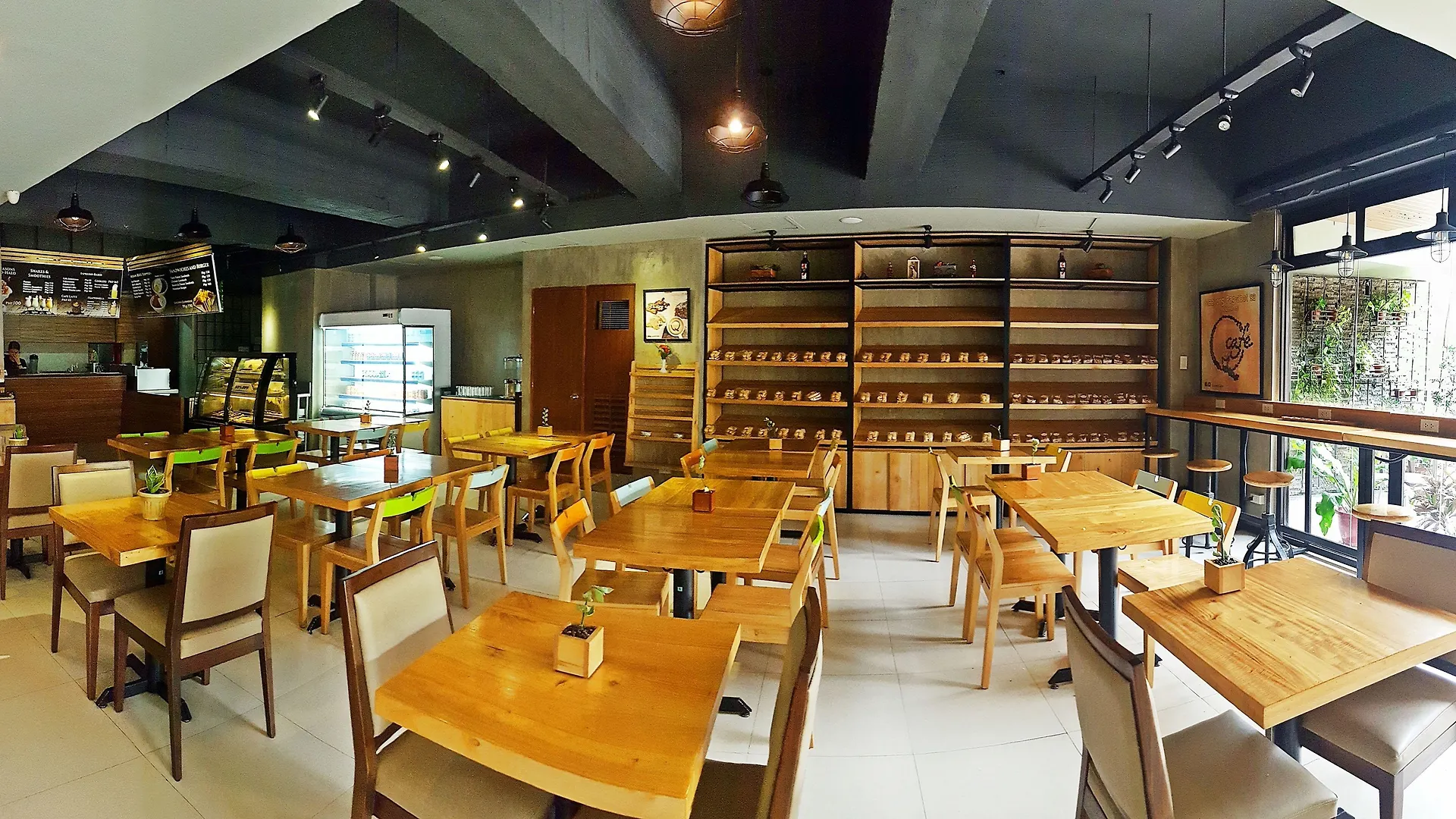 El restaurante Q Cafe acoge a los huéspedes, ofreciéndoles comer en un ambiente cálido.